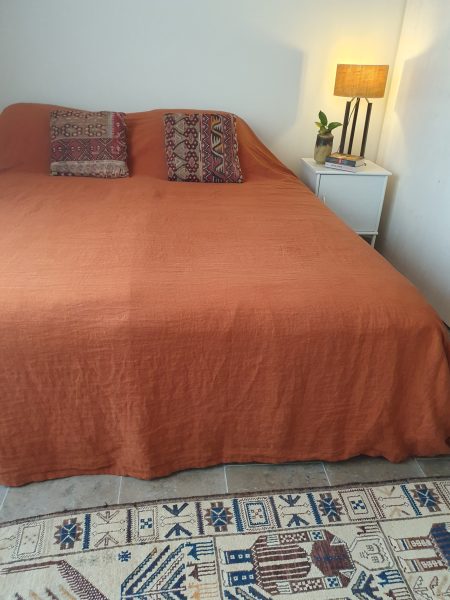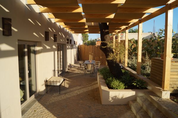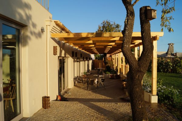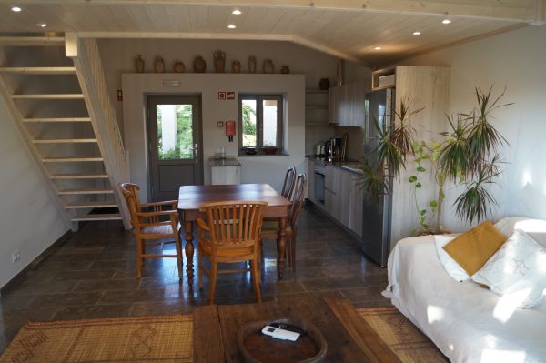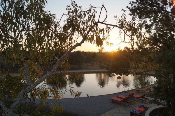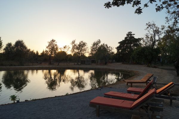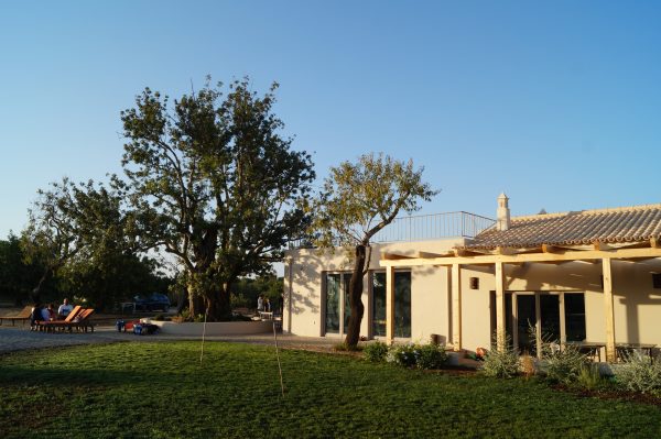 São 3 casas de férias que abrem de um lado para o nosso pomar com citrinos, damasqueiros, romãzeiras, figueiras e amendoeiras, e do outro lado novamente existe uma piscina natural, que convida a refrescar-se no verão. Com uma superfície de cerca de 800 metros quadrados é maior que a de Quintamar. Novamente é autolimpante, utilizando plantas em vez de cloro ou outros aditivos.