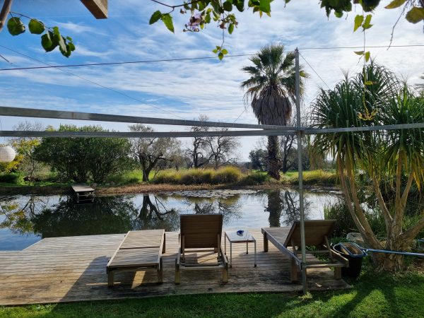 Para aqueles que preferem ficar no local em vez de ir para a praia próxima, a nossa lagoa natural em frente à casa oferece uma alternativa refrescante. Com uma área de 300 metros quadrados, é um dos destaques do Quintamar. A lagoa apresenta uma zona de natação no centro e uma zona de regeneração nas bordas.